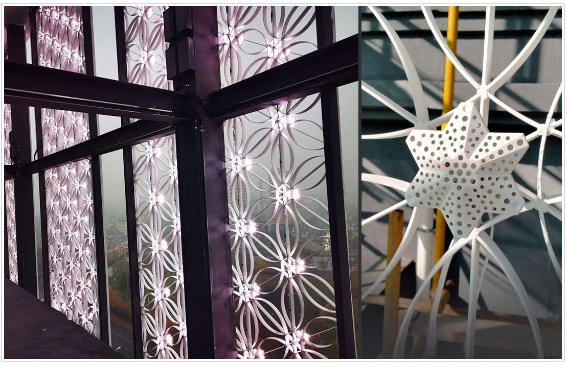 Project introduction The project is located in the bustling Jinnan District; The lamps use Tianjin city flower begonia shape design, two sides of the design of light effect, dark before light, through diffuse reflection to bring alternative three-dimensional effect. At the same time, it also integrates the design of the light without the lamp, so that the lamp and the curtain wall are integrated. Through the adjustable effect and brightness, the curtain wall light is accurately controlled.